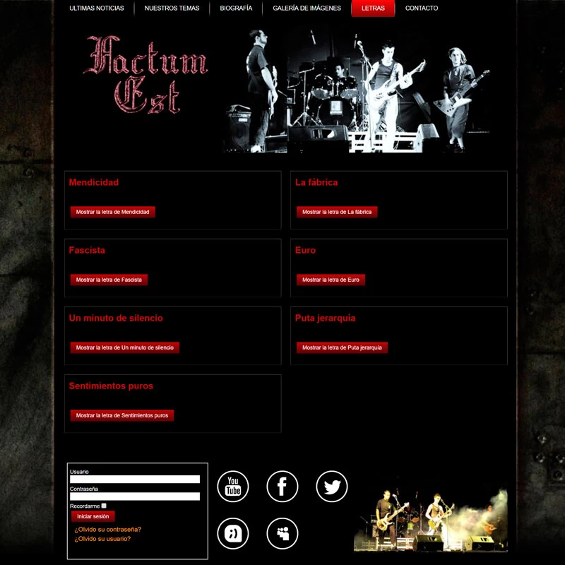 Página web creada para un grupo musical de León. Hemos utilizado colores oscuros, ya que son la imagen de dicho grupo de heavy.