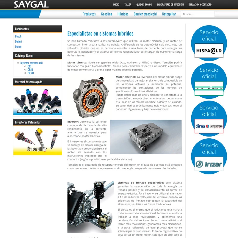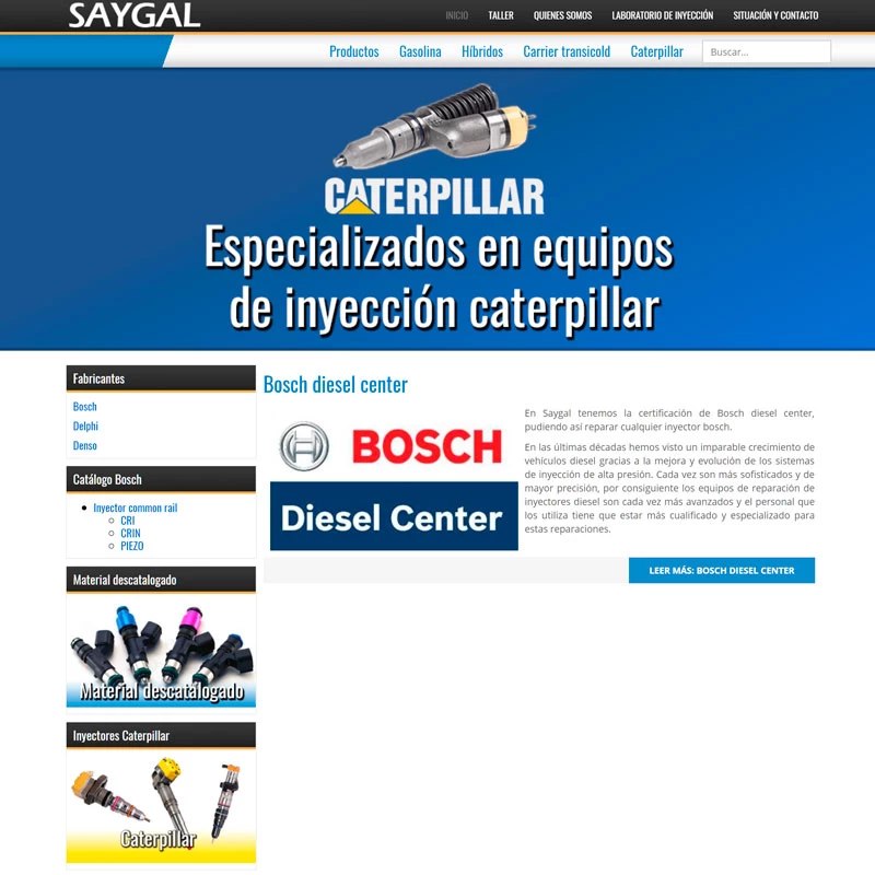 Página web creada para la empresa Saygal del Bierzo, distribuidora oficial de productos caterpillar. Hemos utilizado los colores del logo del cliente como colores principales para la página web, de esta forma cualquier persona que la visite, reconocerá rápidamente la empresa gestora.
